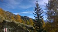 Inmitten von goldigen Lärchen, immergrünen Tannen, begleitet vom Rascheln der Blätter der bereits kahlen Laubbäume, dem Summen der Insekten, nahm ich den Duft von Moos, von den zu Staub werdenden Blättern, den Duft des Herbstes tief in mir auf.