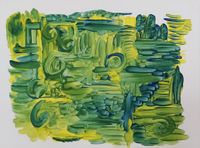 Die grüne Geschichte. Wer findet den Damenhut, mir unbewusst aus dem Pinsel geflossen?